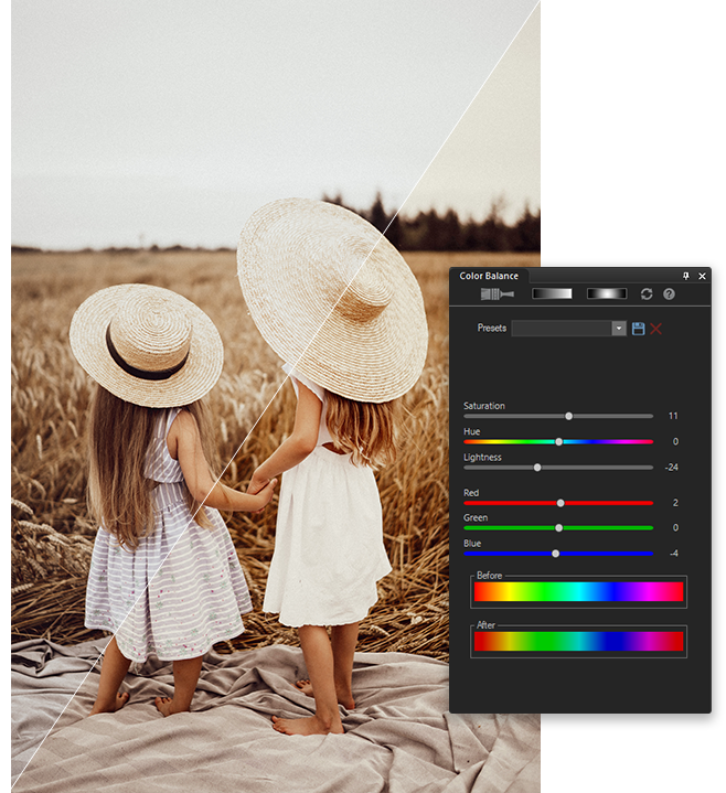 Dosáhněte dokonalých podmínek, které byste v terénu nemohli dosáhnout, použitím jemně vyladěných úprav pomocí sady přesných filtrů. Zvládněte geometrickou nedokonalost pomocí nástrojů pro oříznutí, převrácení, změnu velikosti a otočení. Opravte vady, červené oči, rozmazání, hluk a jasnost. Oživte věci přidáním textu, rámečků, viněta, vodoznaků a dokonce i vykreslením obrázku. Vyberte nepatrné části obrázků, které chcete ovlivnit. Použijte speciální efekty, změny a vylepšení, abyste své fotografie vytvořili přesně podle svých představ.